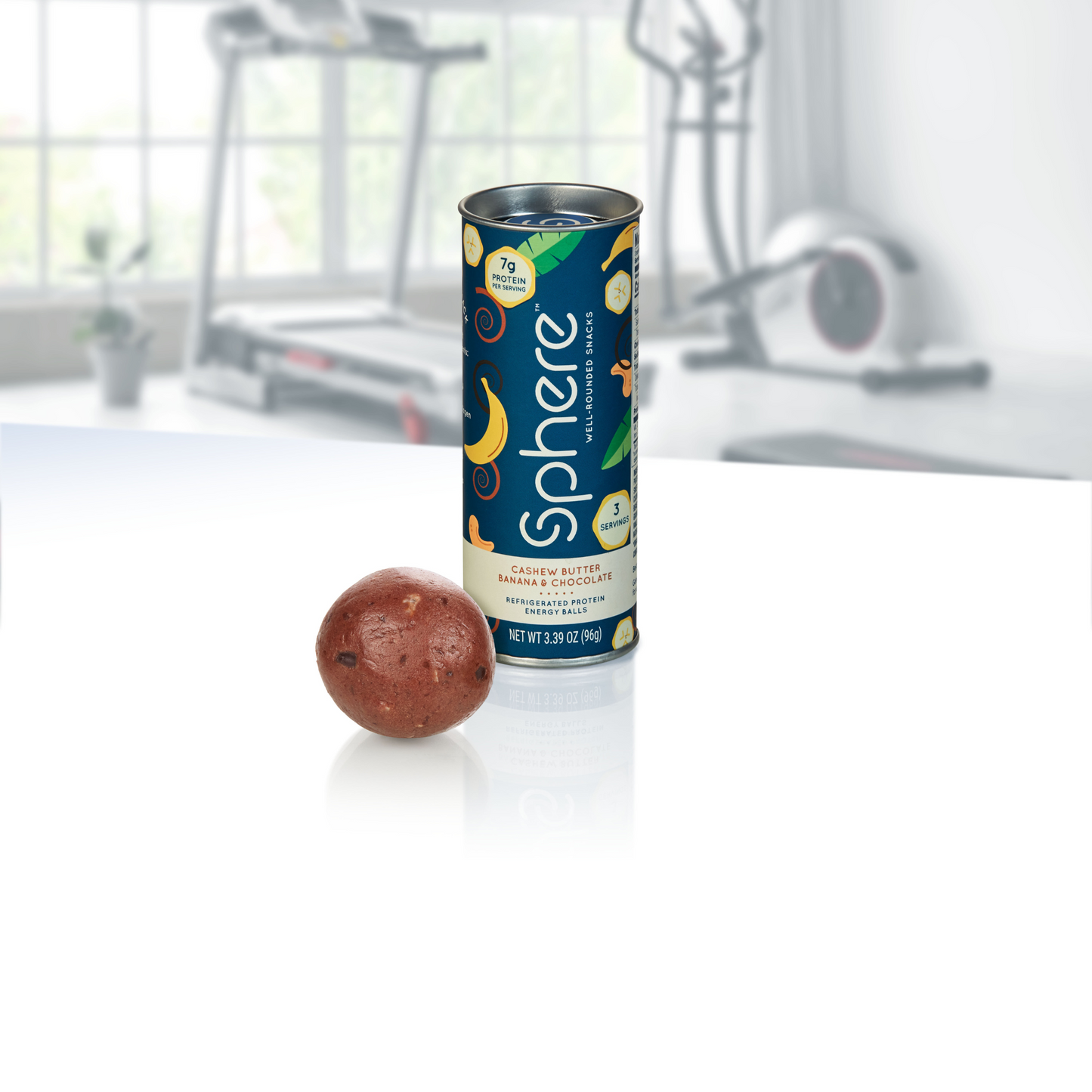 Each resealable Sphere tube stacks and packs three protein balls—perfectly portioned, ready when you are.